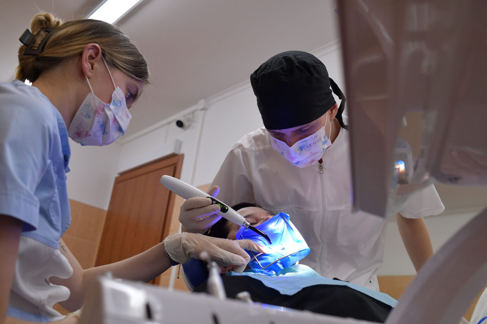 Как и у всех пациентов, приём начался с осмотра и подготовки плана: что важно сделать сейчас, а что можно перенести на следующий визит. В работе участвовали студенты стоматологического факультета: они сами выполняли часть процедур под постоянным контролем врача. Для них это была практика, где важно не только правильно провести манипуляцию, но и выстроить контакт - объяснить, что происходит, действовать аккуратно и внимательно, не торопить и помочь человеку чувствовать себя спокойно.